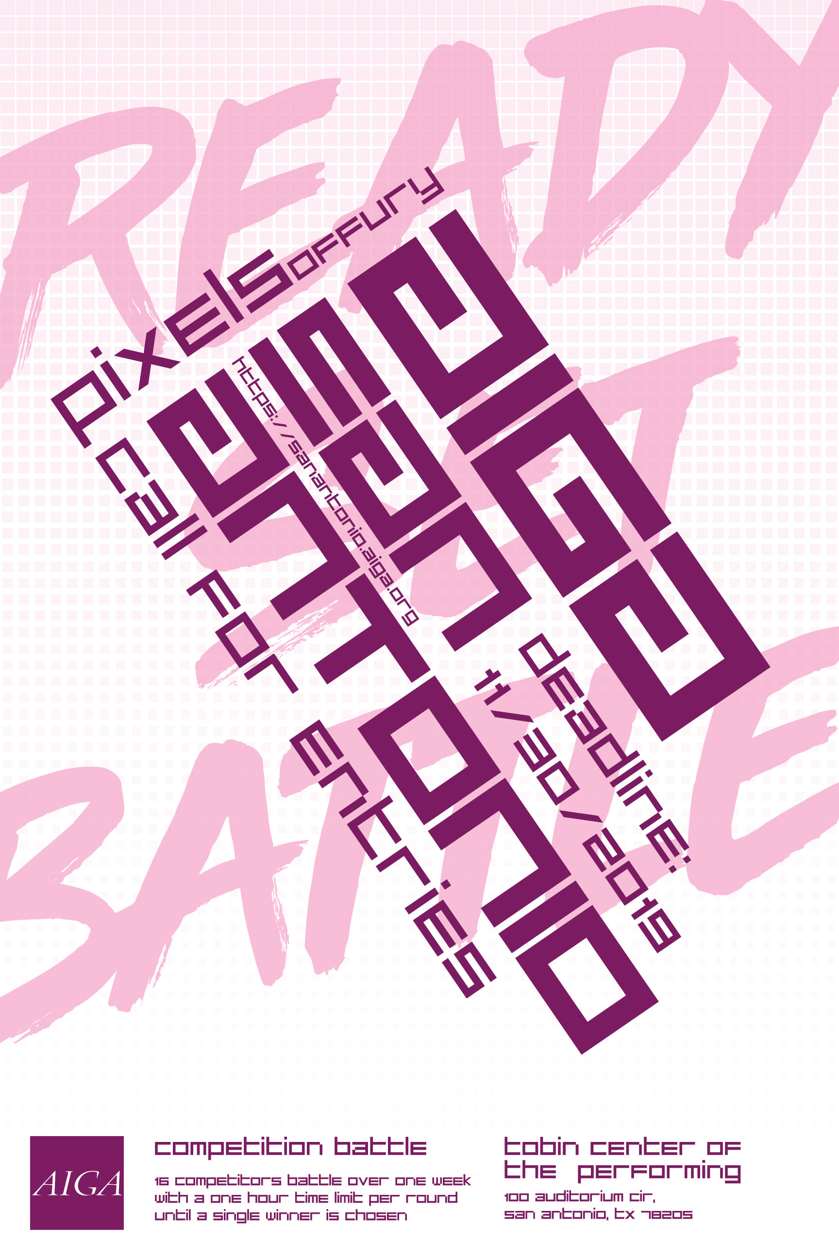 A competition poster meant to advertise a more modern game of versus between designers. The poster is a call for entries and meant to advertise a more video game-like feel.