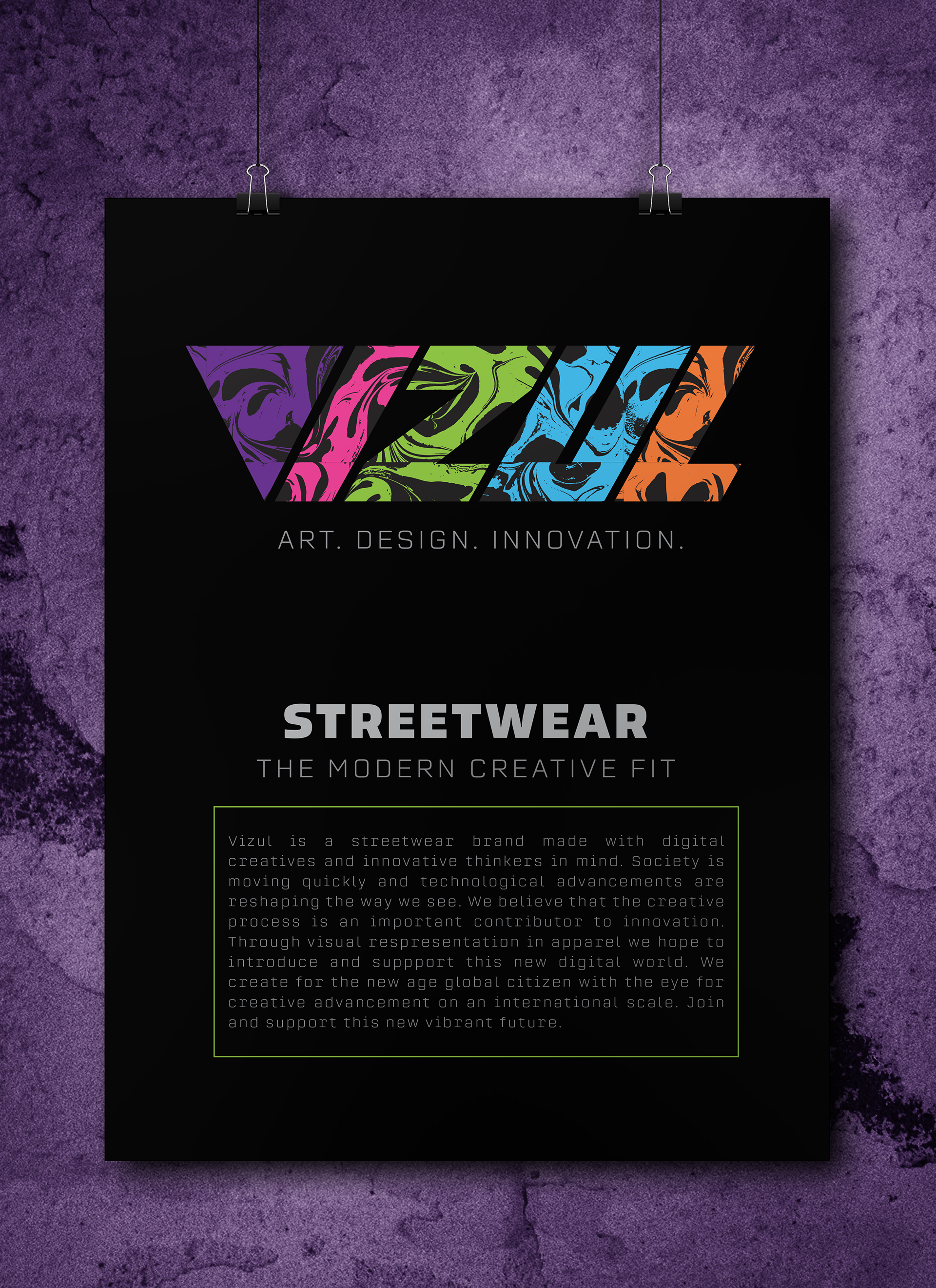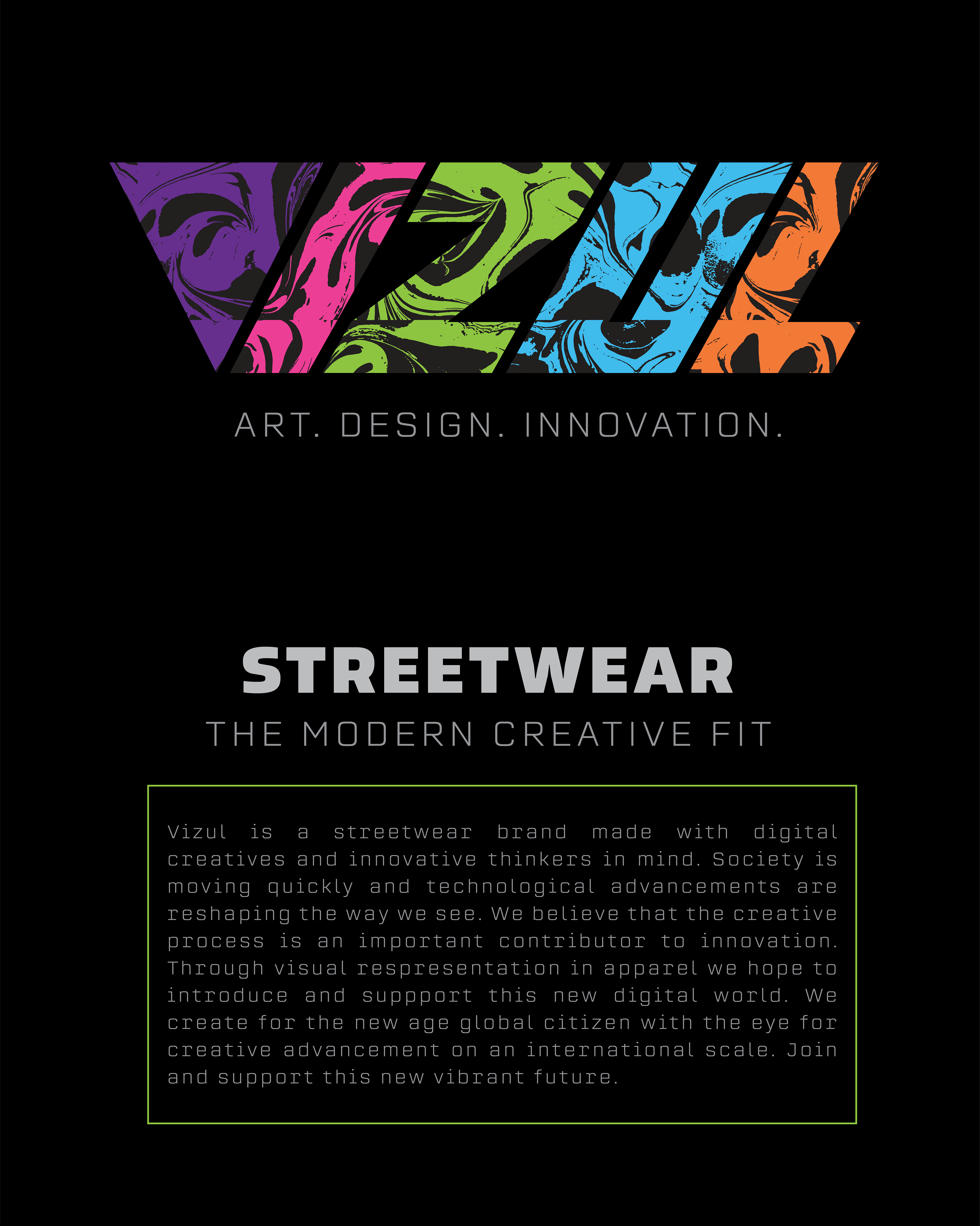 Vizul is an online streetwear brand that promotes the importance of creativity in the search for innovation. Whether it’s through art, design, architecture, media, or tech we’ll try to bring attention to the new. Society is moving quickly, and technological advancements are shaping the way we live our lives. We’re seeing the need for thinkers and creatives to come together to solve current issues in a way that’ll benefit us as a whole. This streetwear brand hopes to grab attention through visual intrigue and direct it to ongoing projects. The brand creates for the new age global citizen with the eye for creative advancement on an international scale.