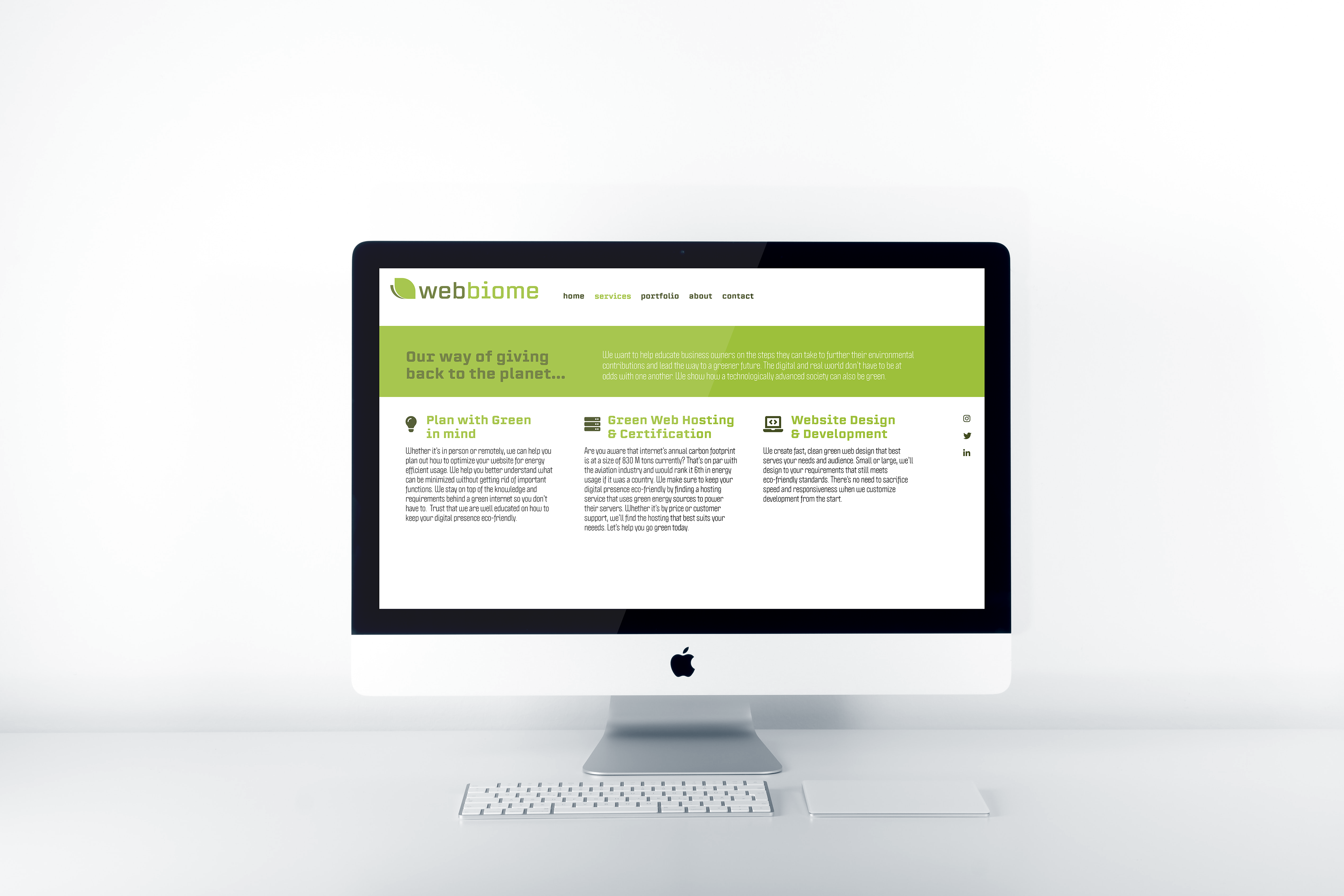 WebBiome is a modern green design company dedicated to providing sustainable and environmentally conscious web design. Through the use of clean and minimalist design principles, WebBiome promises a faster and more data friendly experience that helps you minimize your contribution to the Internet's annual carbon footprint.